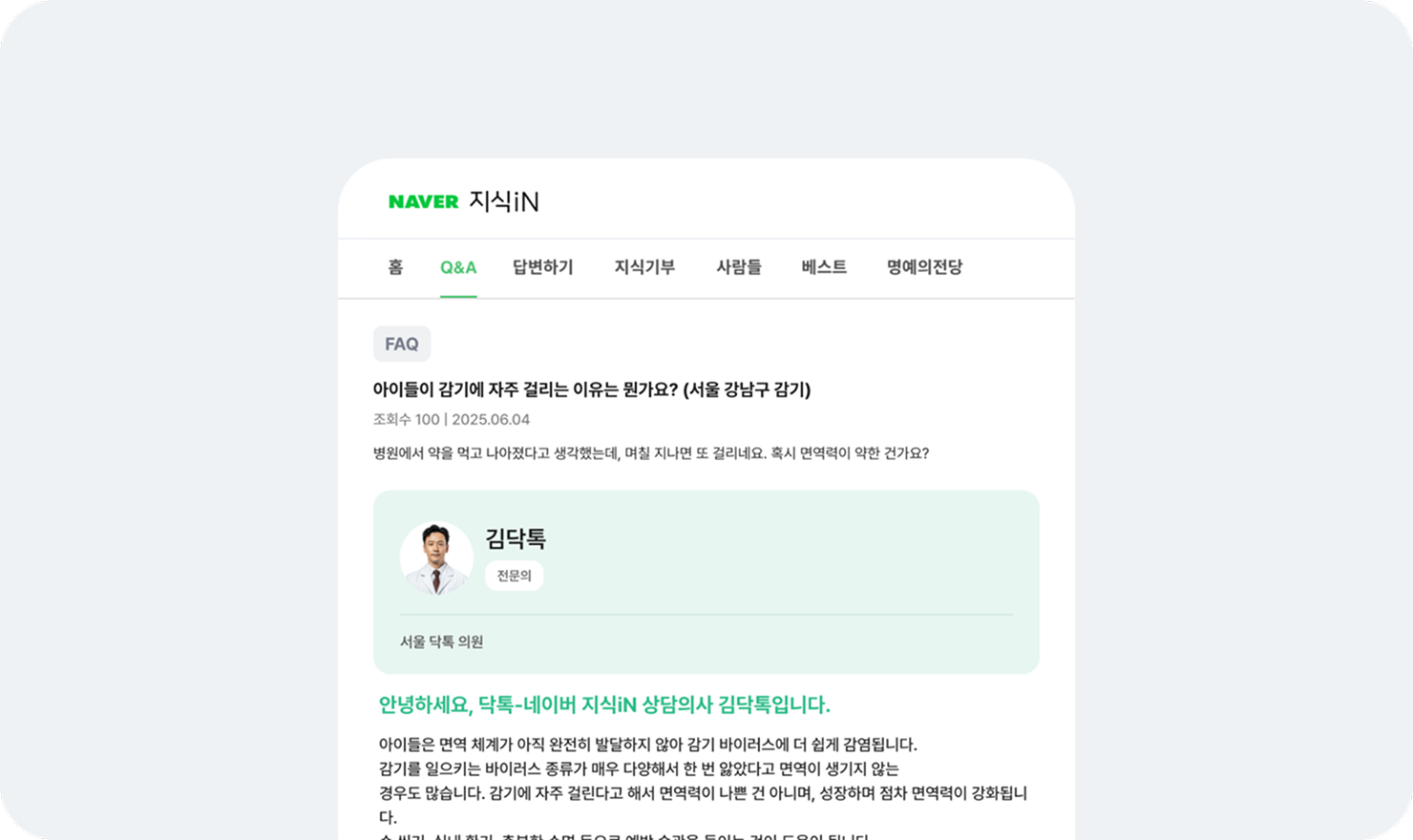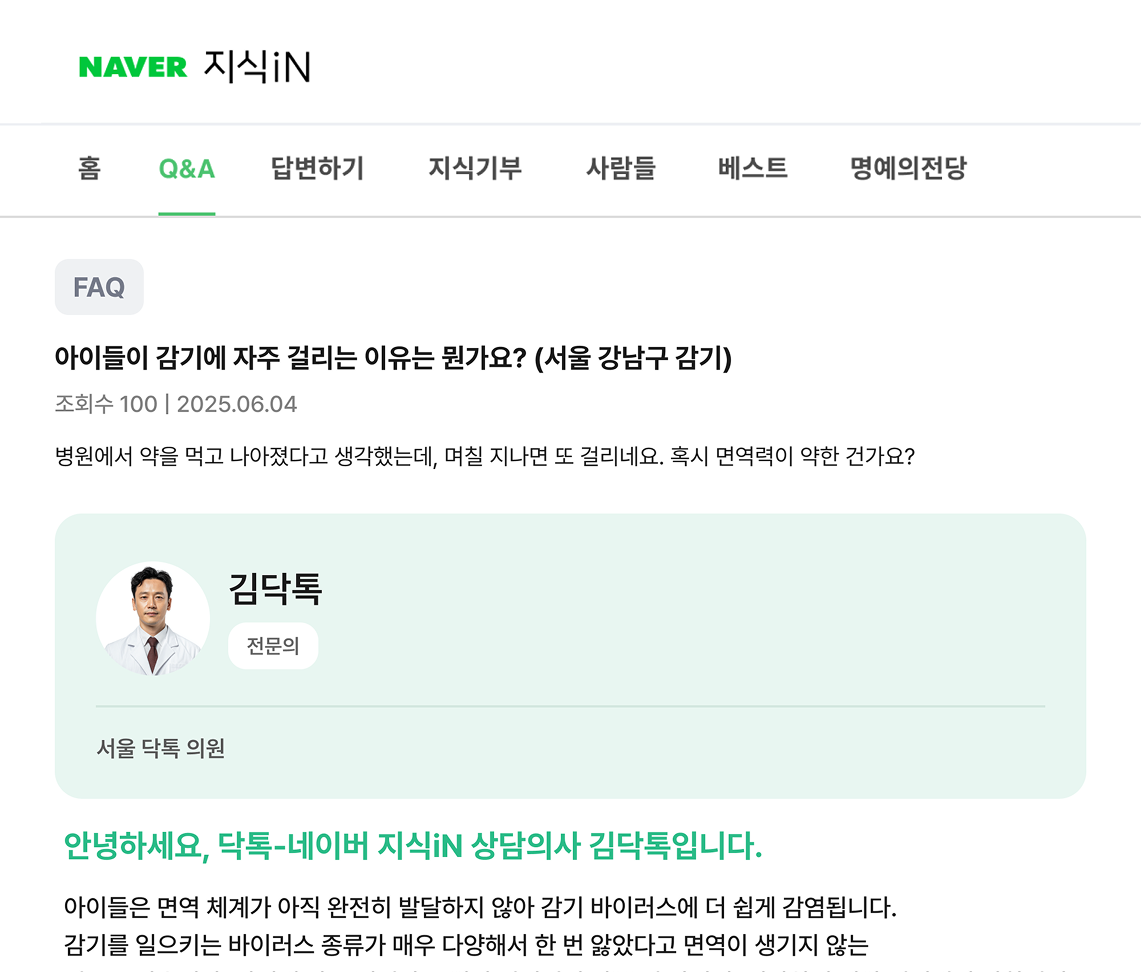 작성한 질문과 답변은 닥프렌즈 팀의 내부 검수를 거친 후 네이버 지식iN에 자동으로 등록돼요.