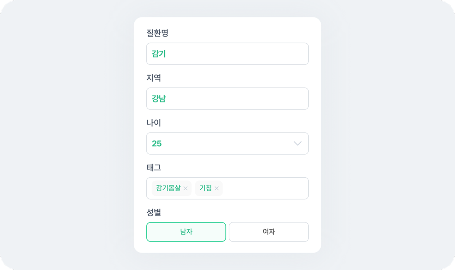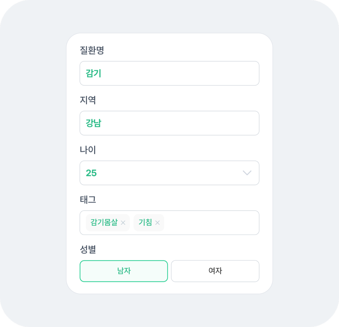 네이버 지식 iN 상위 노출 확률을 높이기 위한 지역, 나이, 성별, 질환명, 질환 관련 키워드(태그)를 포함할 수 있어요.